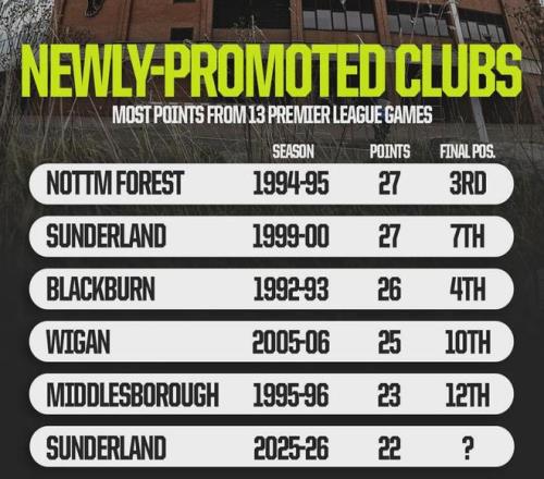 从统计数据可以看到,桑德兰是最近20年来在英超成绩最好的升班马球队。上一支如此惊艳的升班马,还是2005-06赛季的维甘竞技。