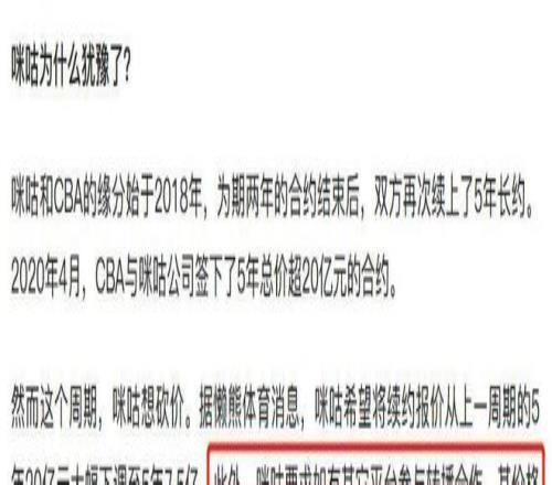 捡了芝麻丢了西瓜咪咕取消CBA一年4亿转播费,新直播商太过精明